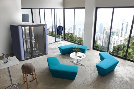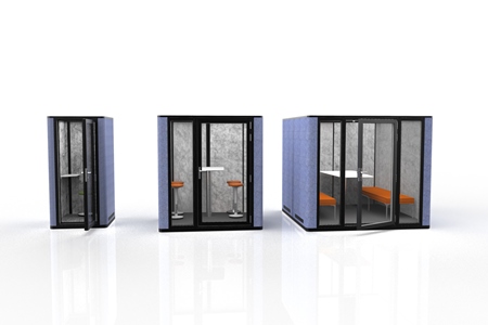 A modern engineered acoustic design sound proof booth giving a privacy phone or video call conversation for all personnel.