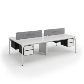 Above all, Arrow workstation of 4 facing desks comes ergonomically designed with standard dimensions of 140L*70W cm . We also customize these adaptable Arrow series workstations to fit in your planed space measurements. Every desk cubicle has a mobile storage cabinet together with round grommets for a clear and organized workspace. Contact OfficeMaster sales team to guide on getting your customized workstation delivered within just 7-12 working days.