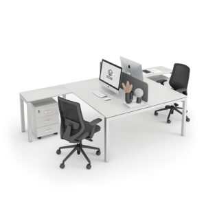 The T-shaped cluster is the best when it comes to combining both the right handed and left handed desks. As 2 L-shaped desks with cabinets are clustered, they form a T shape. Its same as 2 L shapes with one mirrored and then combined back-to-back to form a T shape. The L-shaped segment of the cluster where cabinets are placed underneath creates a barrier between the 2 users. Being that it integrates handedness dynamics, it creates an ergonomic workspace for 2 people with just a linear desking layout variation. OfficeMaster offers; BELLA : Workstation Cluster of 2 In-Line (T-Shape) and DIAMOND : Workstation Cluster of 2 In-Line (T-Shape).